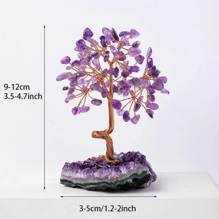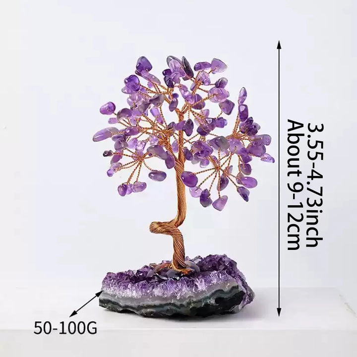 Amethyst Healing Crystals Stones Tree Wire Wrapped on Natural Crystals Gravel with Base Home Desk Living Room Stone Decoration