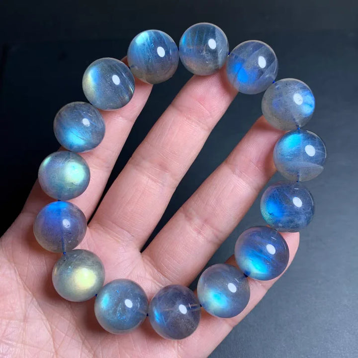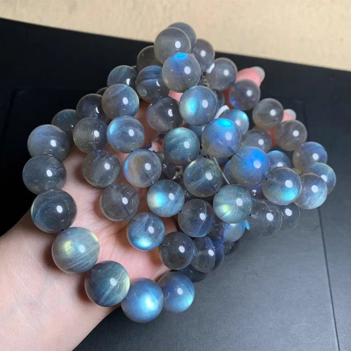 This exquisite unisex bracelet features 12mm natural labradorite round beads that shimmer with captivating blue light and rainbow iridescence. Each high-quality AAAAA grade stone maintains its powerful metaphysical properties, creating a piece that harmonizes elegance with profound spiritual energy.