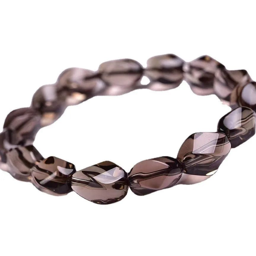 Natural Brown Smoky Quartz Crystal Stretch Bracelet Faceted Oval Beads Women Men 14x10mm Smoky Quartz Rare AAAAAA