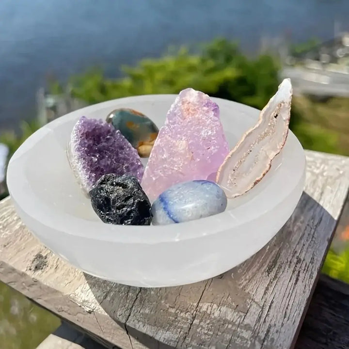 - Crystal Charging Station: Use to cleanse and recharge other crystals by placing them inside the bowl.