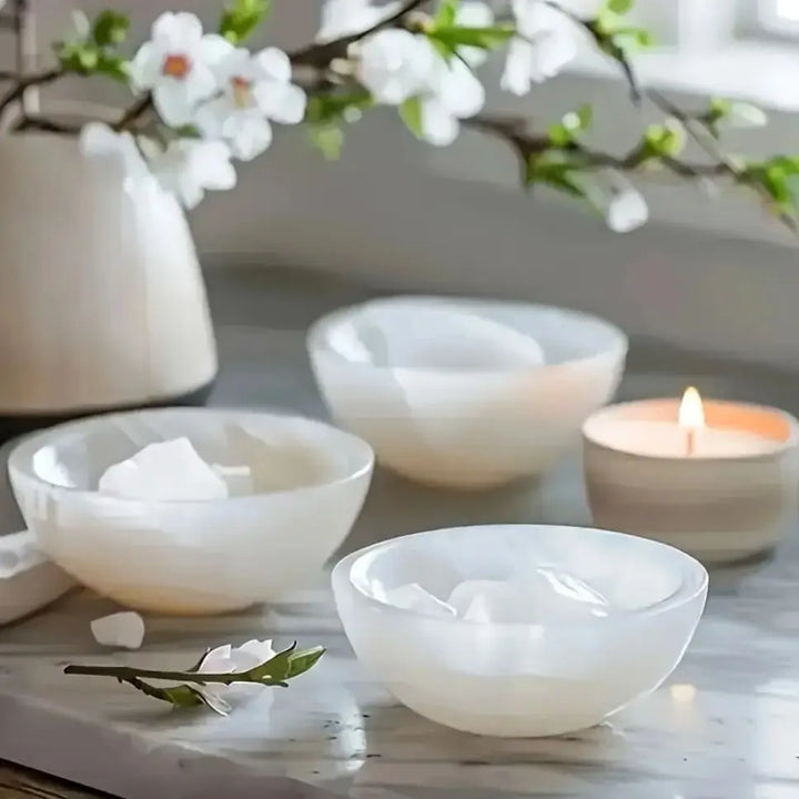 Natural Selenite Bowl Crystal Stone Quartz Minerals Reiki Craft Gifts Energy Healing Demagnetization Luck Spiritual Home Decor