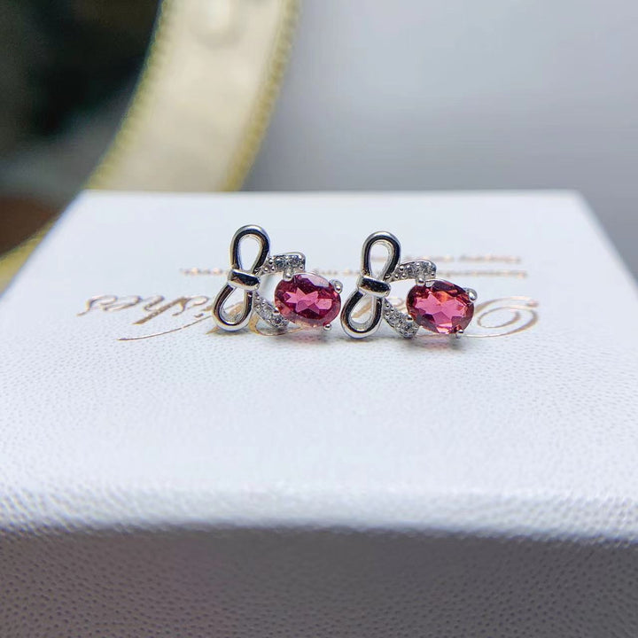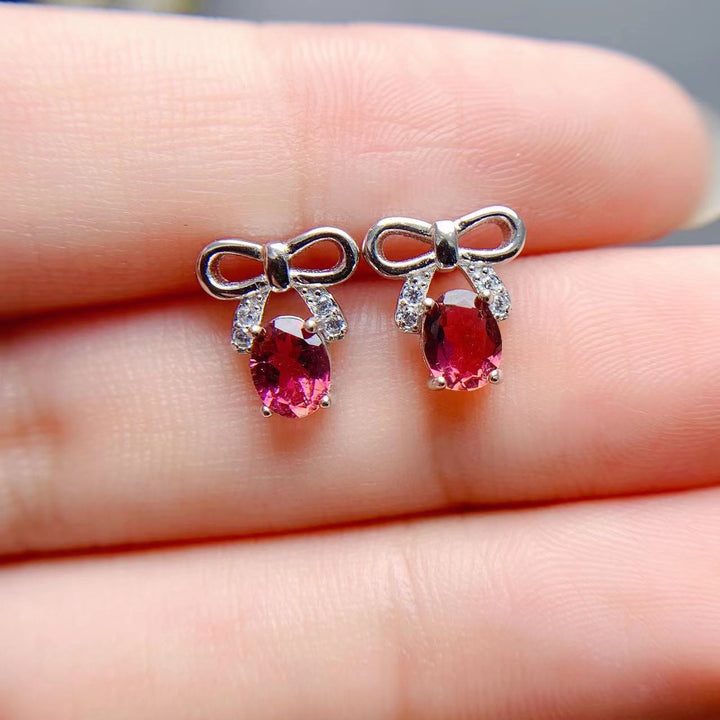 Natural Tourmaline Inlaid Female Colored Gems Stud Earrings